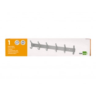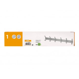 Cabide liderpapel parede metalico 6 suportes cor prata mate 430x88x55 mm