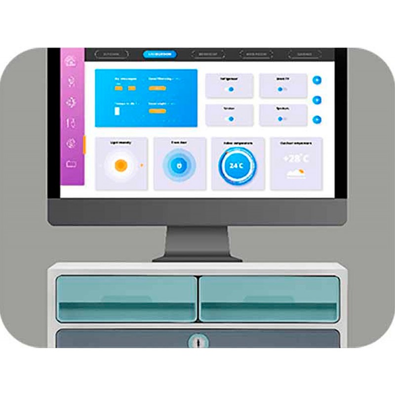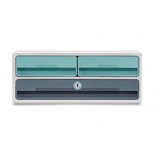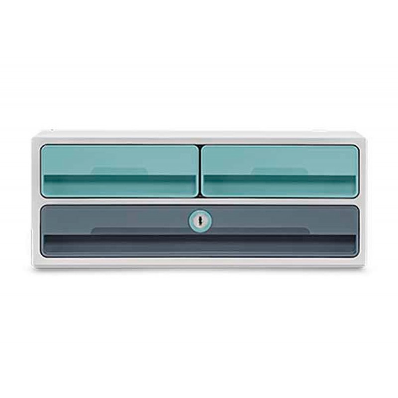 Bloco classificador de gavetas cep moov up reciclado 80% com fechadura 3 gavetas cor azul/cinza 275x369x146 mm