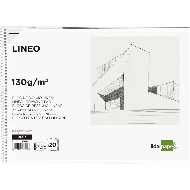 Bloco de desenho liderpapel lineal espiral 230x325mm 20 folhas 130gr com 2 furos perfurado