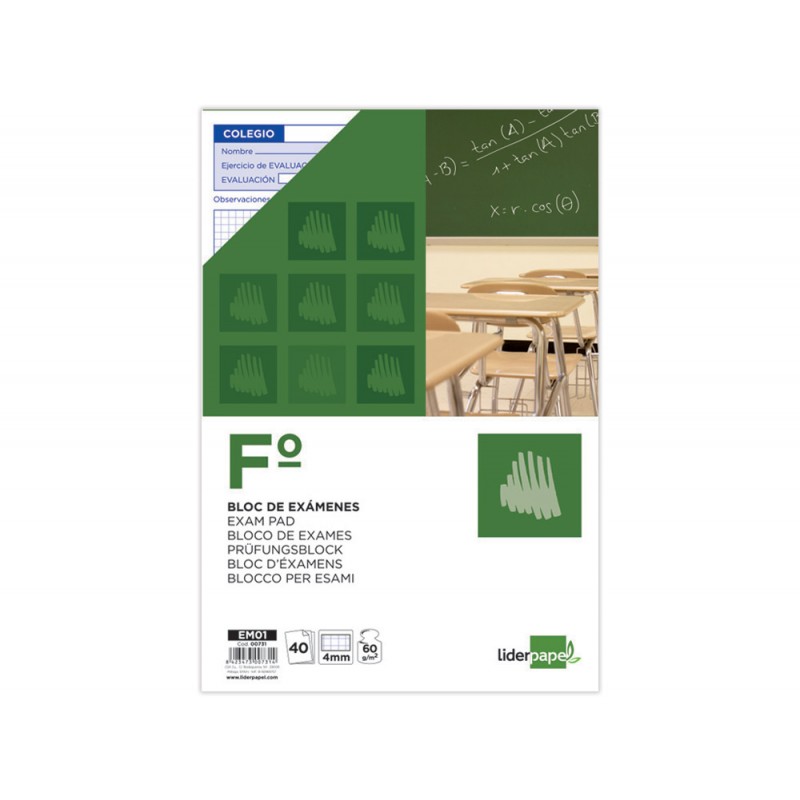 Bloco exames liderpapel quadricula 4 mm foli 40 folhas 60g/m2