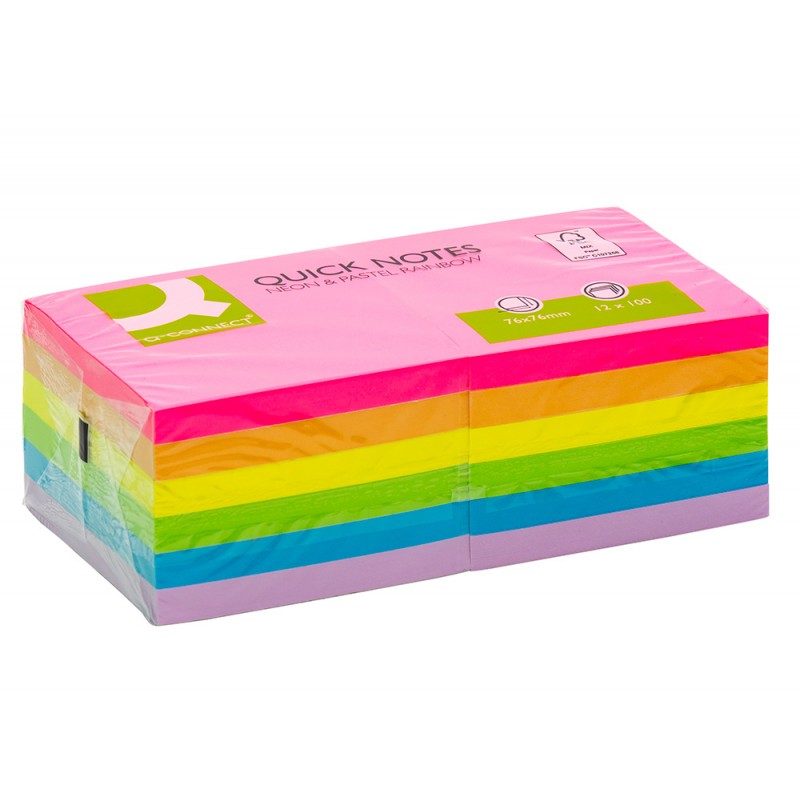 Bloco de notas adesivas q-connect 76x76 mm fsc cores neon e pastel sortidas