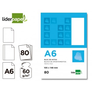 Bloco de apontamentos liderpapel din a6 80 f liso