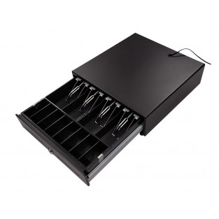 Gaveta de dinheiro seypos eletrico metalico compartimentos 8 moedas 4 notas ranhura frontal fechadura com chave cor pret