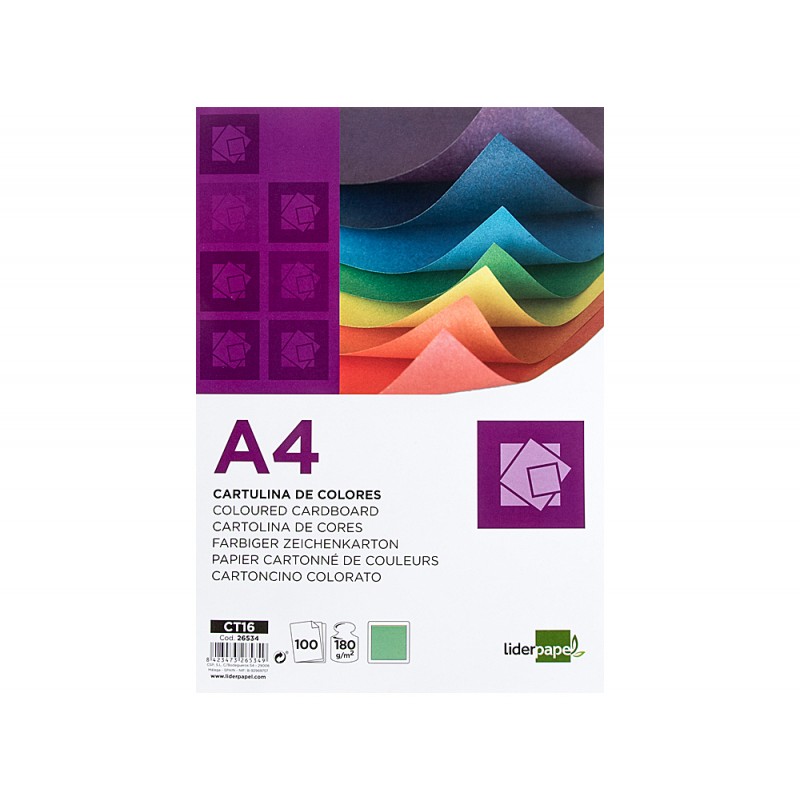 Cartolina liderpapel din a4 180 gr verde pack de 100 unidades