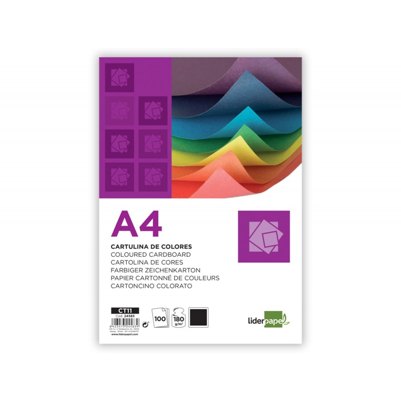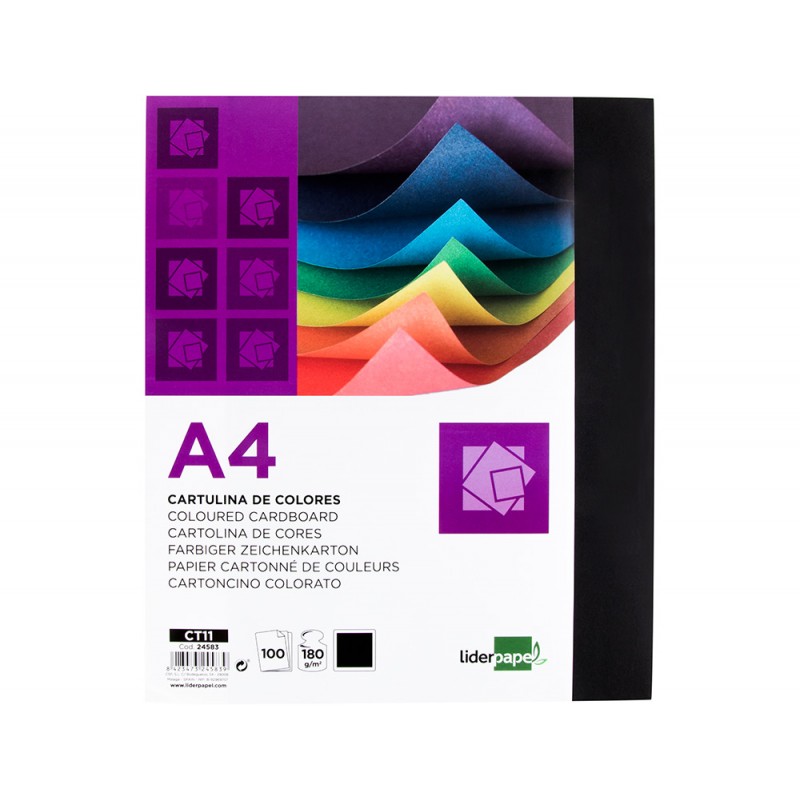 Cartolina liderpapel din a4 180 gr preto pack de 100 unidades