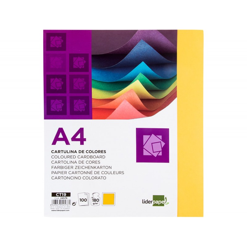 Cartolina liderpapel din a4 180 gr amarela pack de 100 unidades
