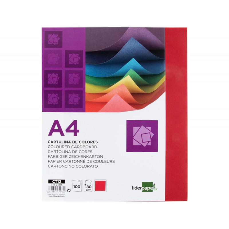 Cartolina liderpapel din a4 180 gr vermelha pack de 100 unidades