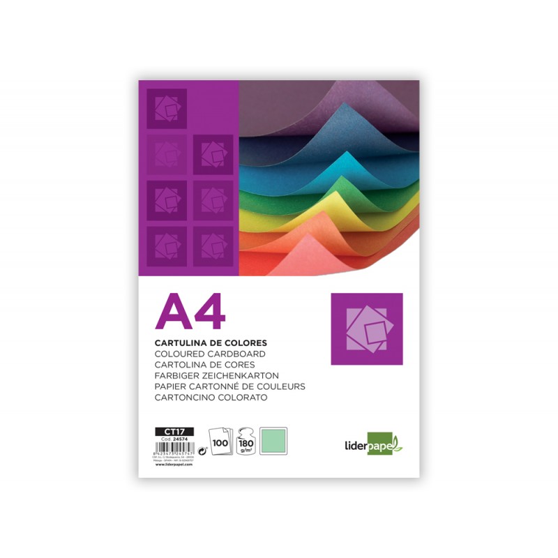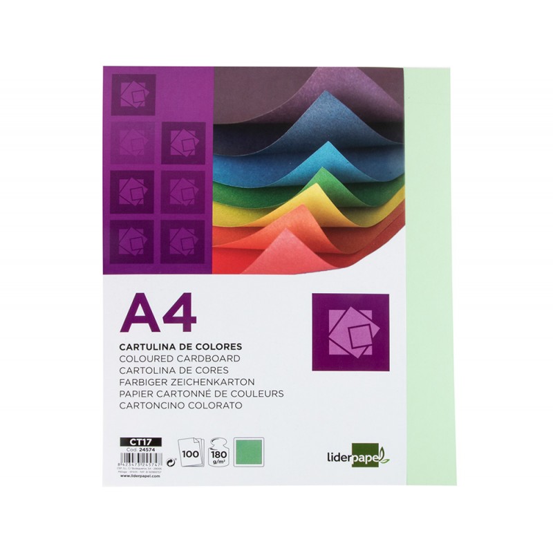 Cartolina liderpapel din a4 180 gr verde pack de 100 unidades