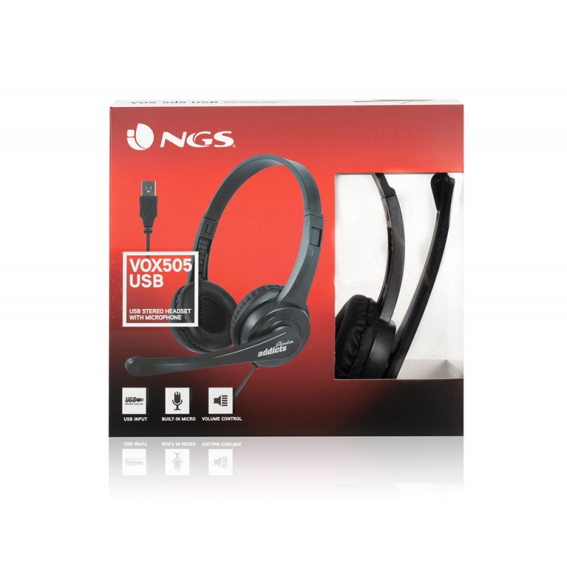 Auricular ngs vox 505 microfone e controlo de volume diadema ajustavel jack 3,5 mm comprimento do cabo