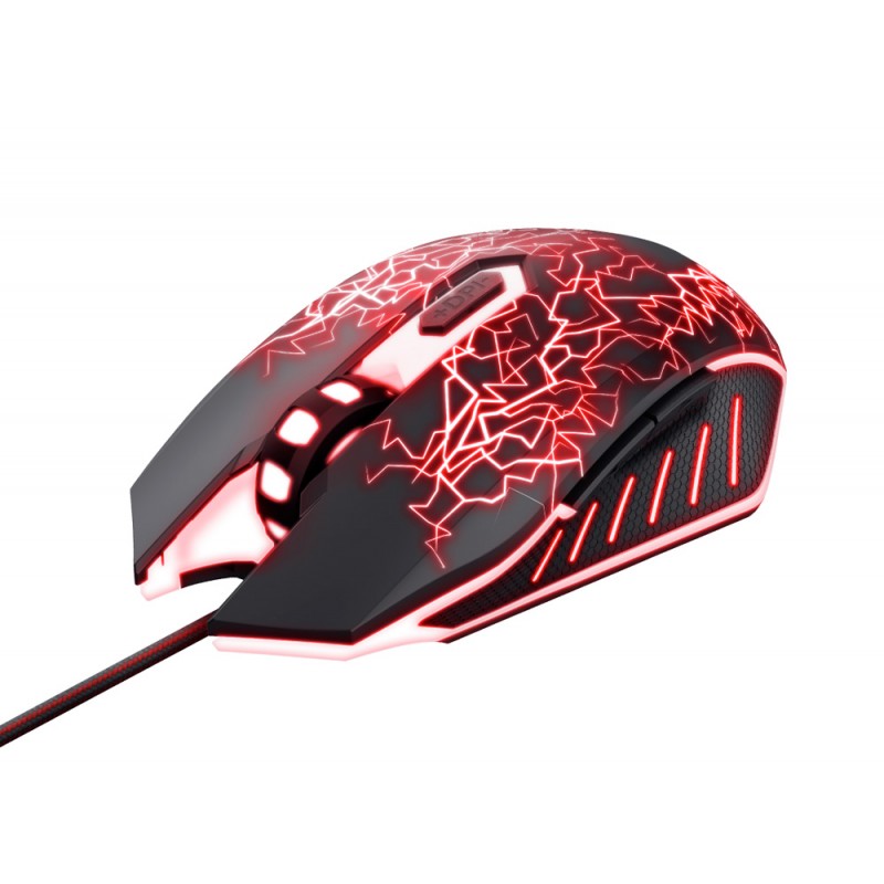Rato trust gxt105x izza gaming otico luzes led 800-4000 ppp 6 botoes usb 2.0 cabo 1,80 m cor preto