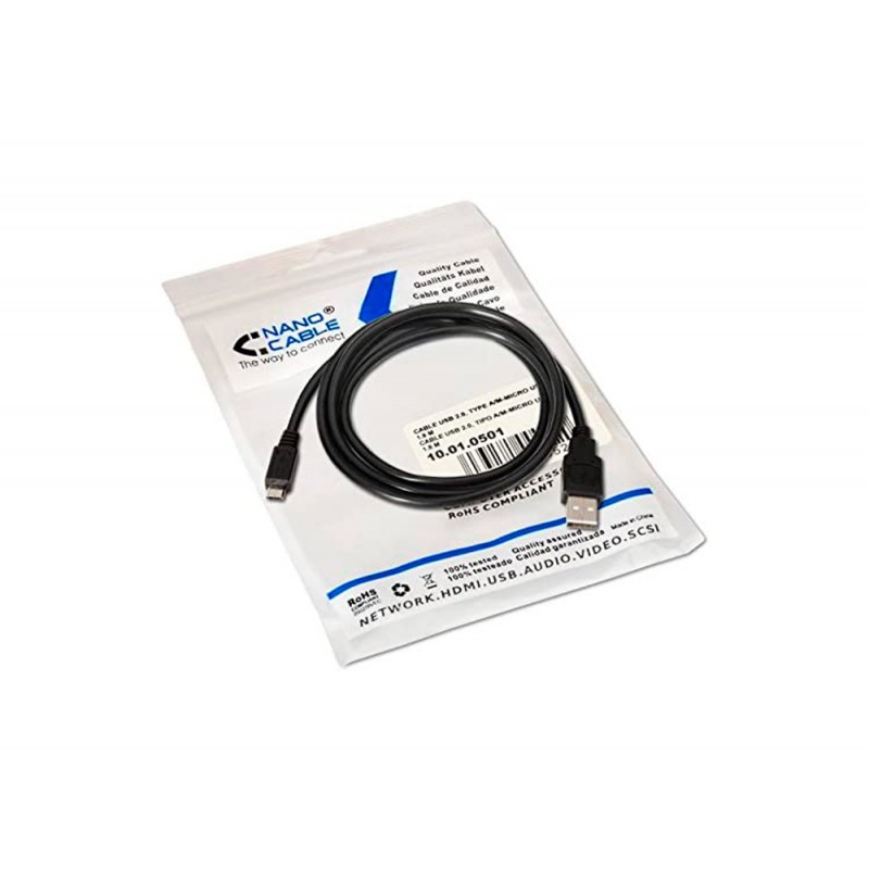 Cabo usb nanocable 2.0 tipo a/m-micro usb b/m cor preto comprimento 0,8 m