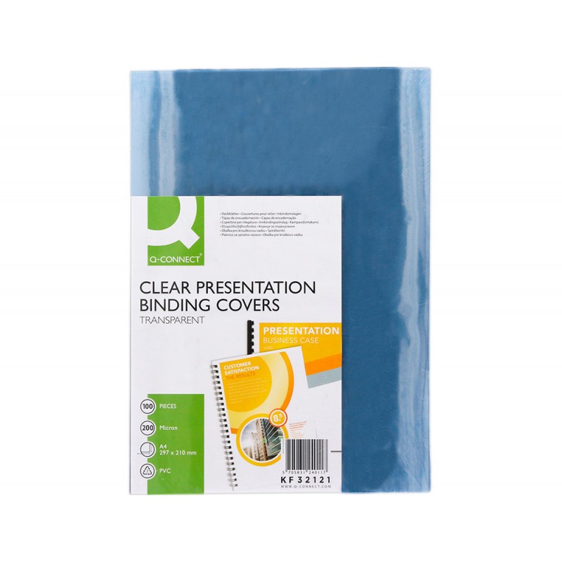 Capa de encadernacao q-connect pvc din a4 incolor 200 microns pack de 100 unidades