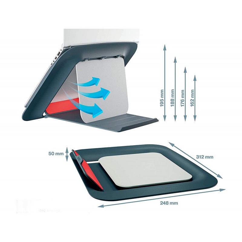 Suporte para portatil leitz ergo cosy ajustavel 4 alturas cor cinza 310x50x247 mm