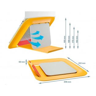 Suporte para portatil leitz ergo cosy ajustavel 4 alturas cor amarelo 310x50x247 mm