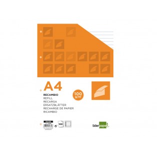 Recarga liderpapel din a4 100 folhas 100 g/m2 pautado horizontal com margem 4 furos