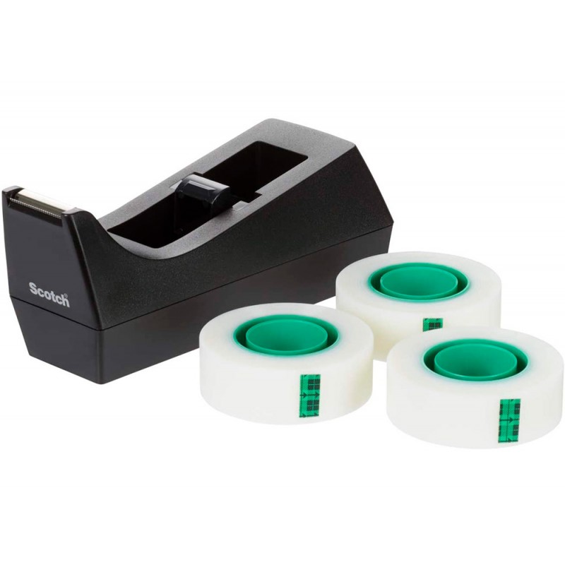 Desenrolador scotch de secretaria c38 preto inclui 3 rolos de fita scotch magic 33 mt x 19 mm