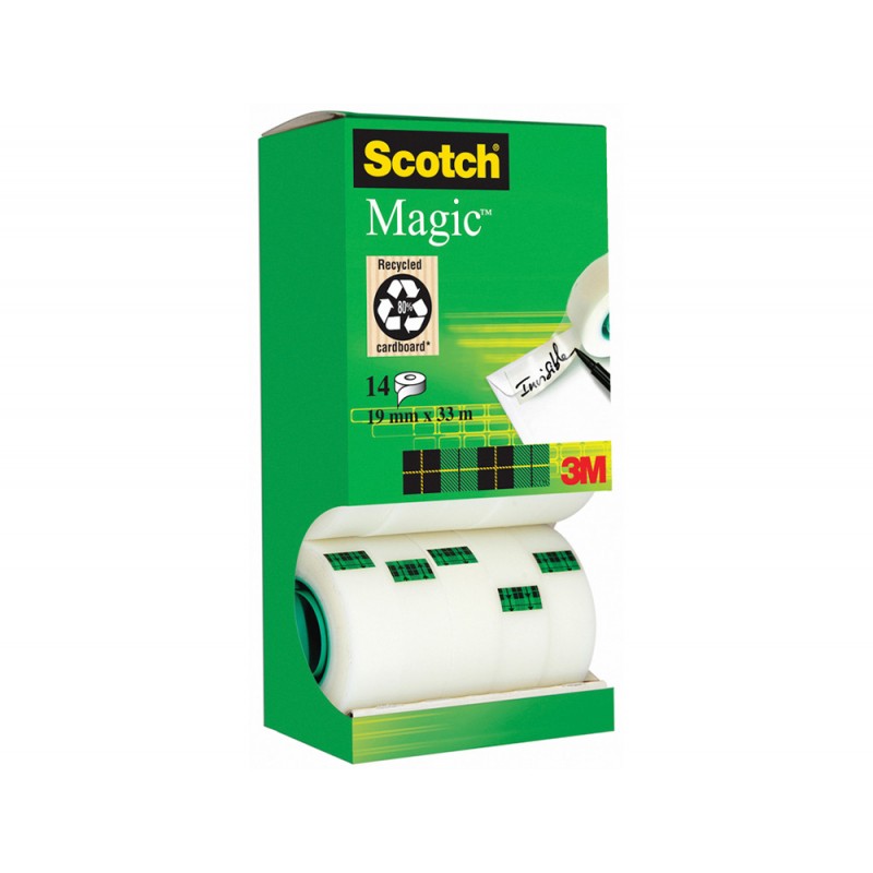 Fita adesiva scotch magic 19mm x 33 mt pack de 14 rolos com dispensador de cartao