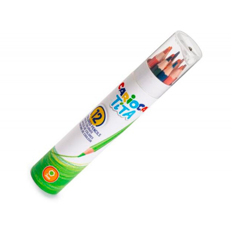 Lapis de cor carioca tita mina 3 mm tubo metal 12 cores sortidas + apara lapis