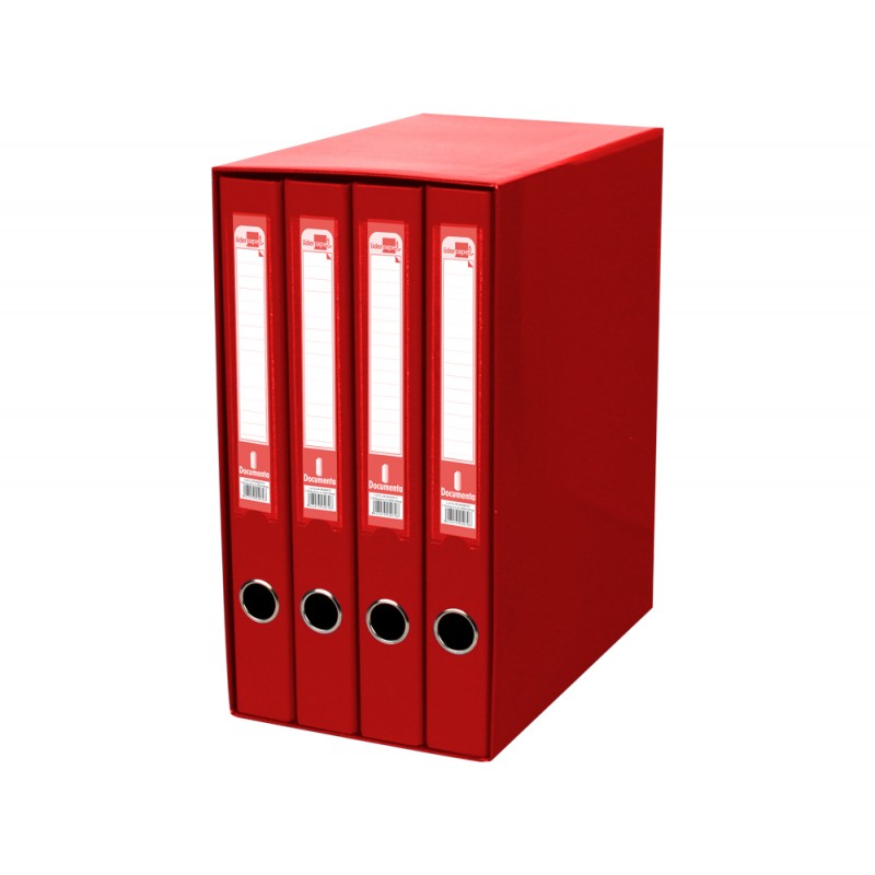 Modulo de 4 pastas de arquivo liderpapel 2 aneis folio lombada 35 mm vermelho