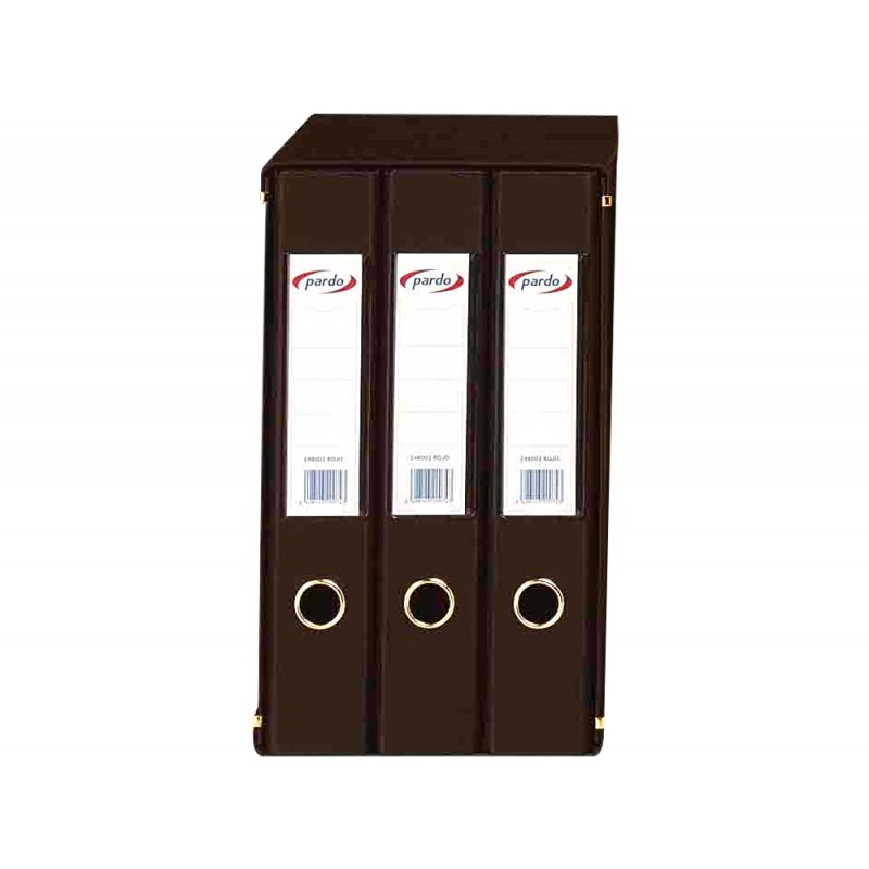Modulo de 3 pastas de arquivo pardo folio 2 aneis 40 mm preto 350x200x300 mm