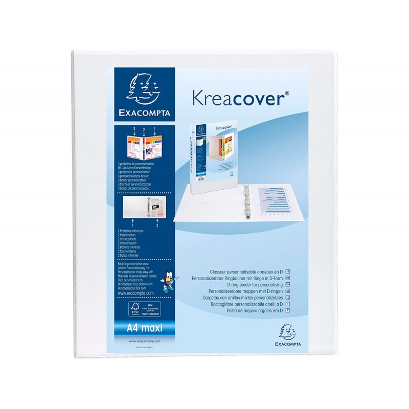 Pasta exacompta canguro 4 aneis 50 mm din a4+ cartao forrado polipropileno personalizavel 3 bolsos branca