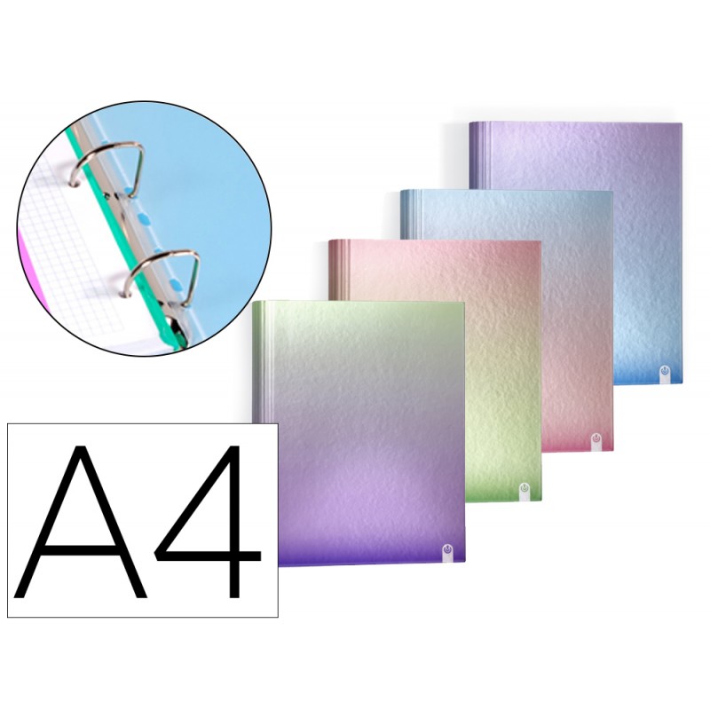 Pasta de 4 aneis de 40 mm carchivo din a4 cartao forrado cor metalizado gradiente