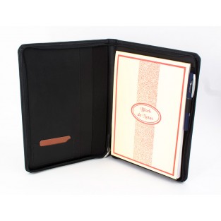 Pasta portfolio imitacao de pele formato din a4 cor preto com fecho e departamentos 332x262x30 mm