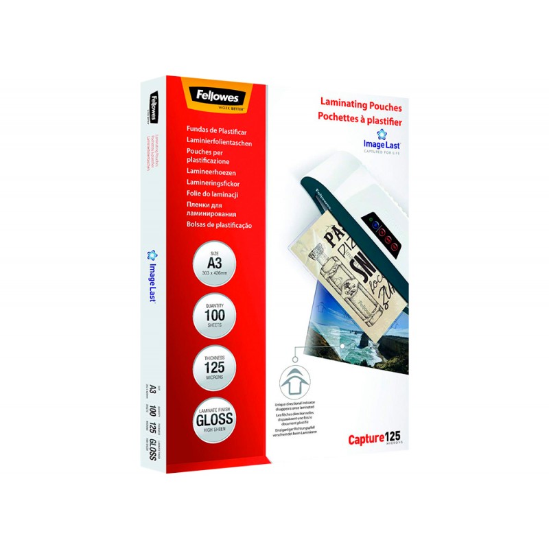 Bolsa de plastificar fellowes brilho din a3 125 microns pack de 100 unidades