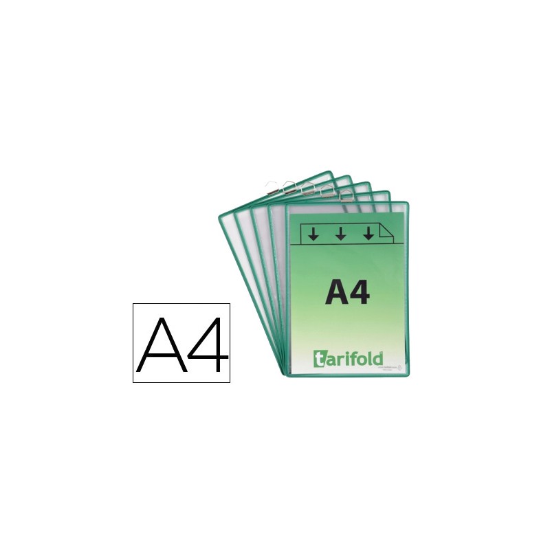 Bolsa para pendurar tarifold din a4 pvc com anel moldura verde pack de 5 unidades
