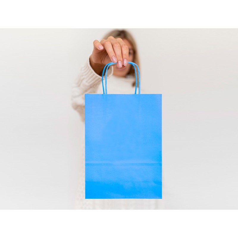Saco de papel q-connect celulose celeste m com asa torcida 270x370x120 mm