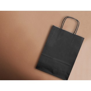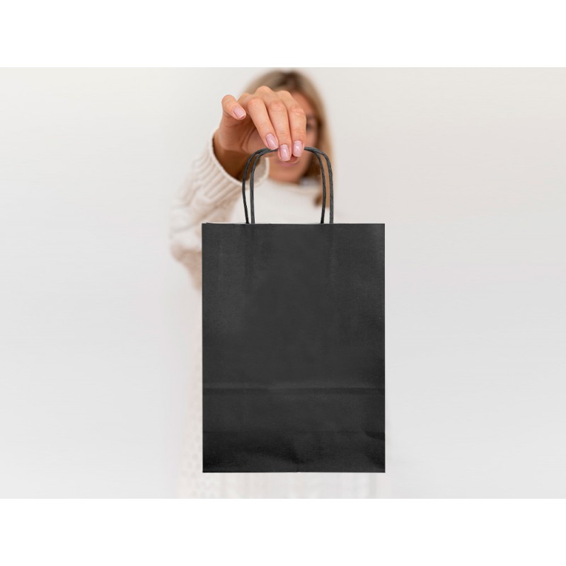 Saco de papel q-connect celulose preto xs com asa torcida 180x240x80 mm