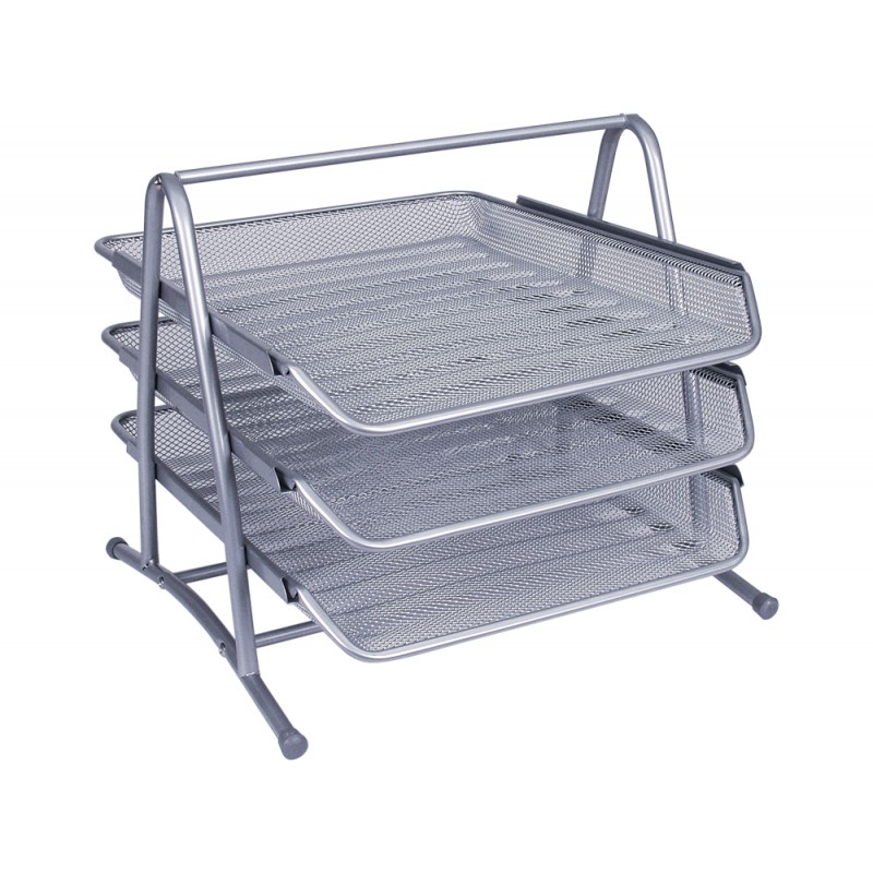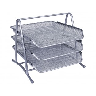 Conjunto 3 tabuleiros de secretaria q-connect rede metalica, cinzento
