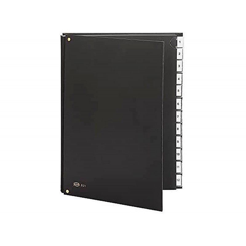 Pasta classificadora pardo com fole cartao compacto folio com 12 departamentos visor duplo personalizaveis cor preto