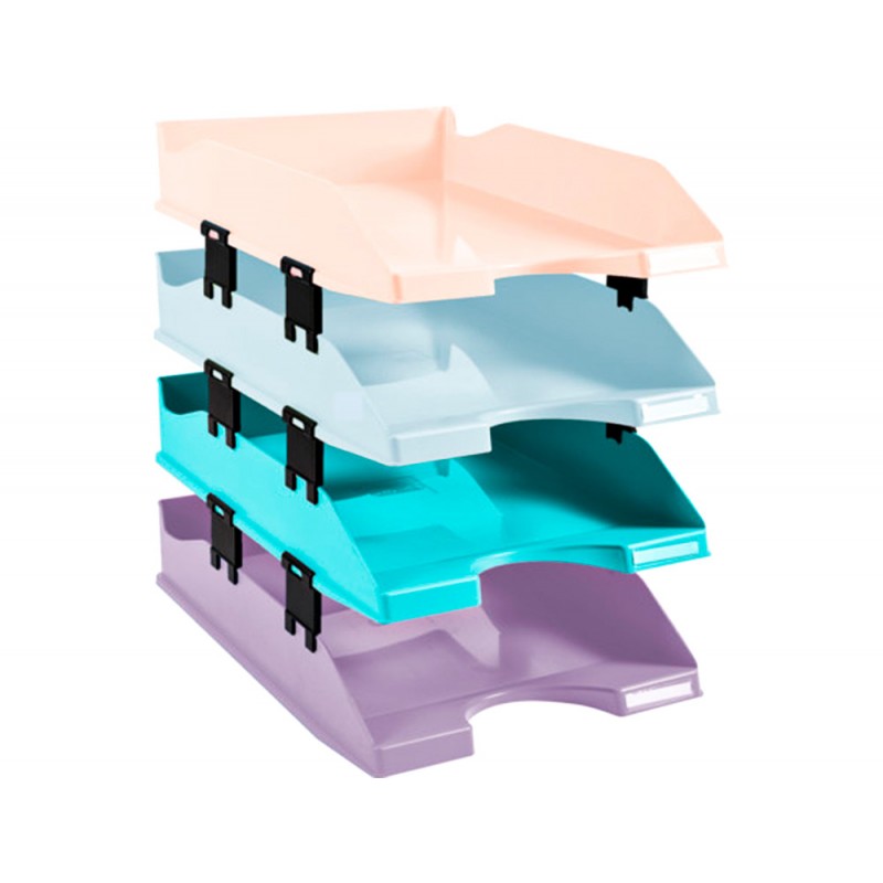 Tabuleiro de secretaria exacompta aquarel set de 4 bandejas combo midi cores pastel 346x225x243 mm
