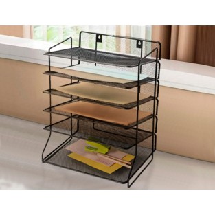 Tabuleiro de secretaria q-connect metalica preta 6 bandejas 325x230x390 mm
